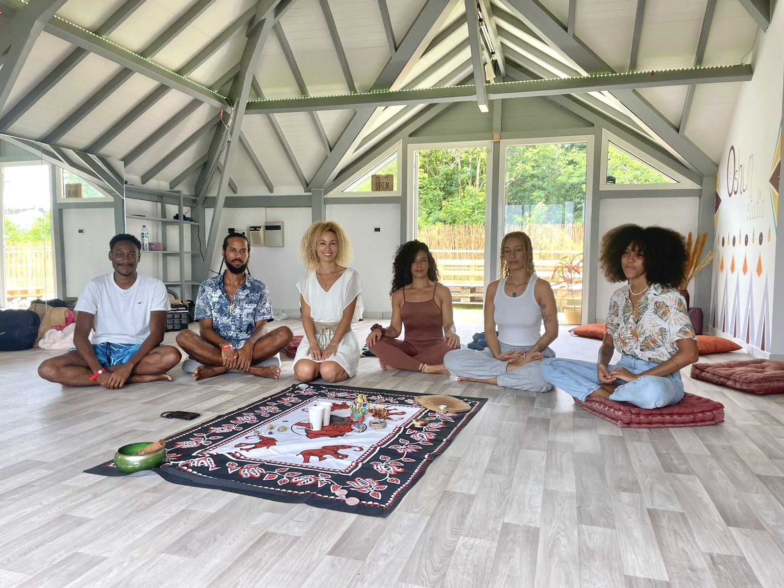 Dans un cadre naturel et bienveillant, cette retraite est une invitation à libérer les anciens codes, à guérir en profondeur et à vous reconnecter à votre essence afin d'atteindre vos objectifs. Nous offrons un accompagnement privilégié, et prenons 7 participants maximum par retraite. Au programme : 📆 AVANT LA CÉRÉMONIE : 🥗 Préparation alimentaire : plusieurs semaines avant la cérémonie, nous vous fournissons un protocole de préparation alimentaire précis pour préparer votre corps au full-flood et vous permettre de bénéficier de toutes les propriétés de guérison de l'Iboga. 📙 Préparation des intentions : la méthode mise au point par Jadhe Diesse met les intentions au cœur de votre préparation. Dans les semaines précédant la retraite, vous serez guidés sur la préparation des intentions de guérison et d'évolution pour votre cérémonie. 📆 JOUR 1 - Mercredi 21 Octobre : ✨ Accueil des participants à partir de 15h : début du processus de préparation. 🌍 Mouvements du Monde – des pratiques corporelles pour rétablir la connexion au corps, soutenir la circulation de l’énergie et préparer l’accueil de la médecine et faciliter l'intégration. 🎶 Ateliers Chakra & Chant Alchimique – réharmonisation énergétique, purification et activation de la voix. 🫂 Premier cercle de parole : explications détaillées sur la cérémonie full-flood. Connexion, partage profond et authentique avec notre groupe de cérémonie. 📆 JOUR 2 - Jeudi 22 Octobre : 🫂 Temps de préparation, questions-réponses : ancrer vos intentions avant la cérémonie. Connexion, partage profond et authentique avec notre groupe de cérémonie. 💧Douche au sel – un rituel de purification en profondeur, pour accompagner le corps et l’énergie. 🧘♂️ Séance individuelle ou duo de soin énergétique – pour nettoyer, harmoniser et aligner votre champ avant la cérémonie Full Flood. 🌍 Mouvements du Monde – des pratiques corporelles pour rétablir la connexion au corps, soutenir la circulation de l’énergie et préparer l’accueil de la médecine et faciliter l'intégration. 🎶 Ateliers Chakra & Chant Alchimique – réharmonisation énergétique, purification et activation de la voix. 📝 Journal de bord & connexion à la nature – un environnement naturel puissant pour soutenir votre transformation et accueillir ce moment sacré. 🌿 Cérémonie Iboga Full Flood – cérémonie chamanique profonde, du jeudi soir au samedi matin. 📆 JOUR 3 - Vendredi 23 Octobre : 🌿 Cérémonie Iboga Full Flood – guérison profonde avec l'Iboga. 📆 JOUR 4 : Samedi 24 Octobre : 🌿 Fin de la cérémonie Iboga Full Flood en douceur. 🧘♂️ Protocole chamanique d'intégration. 📝 Journal de bord & connexion à la nature. 🫂 Cercle de parole et t'intégration : intégrer en conscience ce qui aura été libéré. Connexion, partage profond et authentique avec notre groupe de cérémonie. 📆 JOUR 5 : Dimanche 25 Octobre : 🥘🥗 Brunch 🫂 Dernier cercle de parole et t'intégration. 🧘♂️ Pratiques chamaniques d'intégration. 🛳️ À 14h, départ des participants. TOUT AU LONG DE LA RETRAITE : 🥘🥗 Repas faits maison avec amour – conçus pour accompagner votre processus de transformation, en soutien du corps et de l'esprit. 🌀 Temps d’intégration dédié pendant le séjour – incarner pleinement les guérisons reçues et repartir confiant, aligné avec vous-même. APRÈS LA RETRAITE : ✨ Un groupe WhatsApp dédié à votre d'intégration ouvert pendant 1 an, pour notre groupe de cérémonie uniquement. Au cours de la première année, il vous sera proposé un appel de groupe pour réaliser un bilan de votre cérémonie full-flood. 🌐 LANGUES PARLÉES : français, anglais et espagnol. Nous parlons également un peu portugais et chinois.